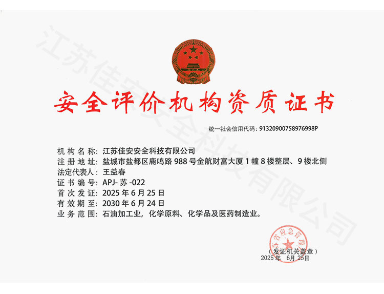 • 濱海雅克化工有限公司“年產(chǎn)1500噸亞微米級(jí)球形二氧化硅漿料生產(chǎn)線建設(shè)項(xiàng)目”安全條件